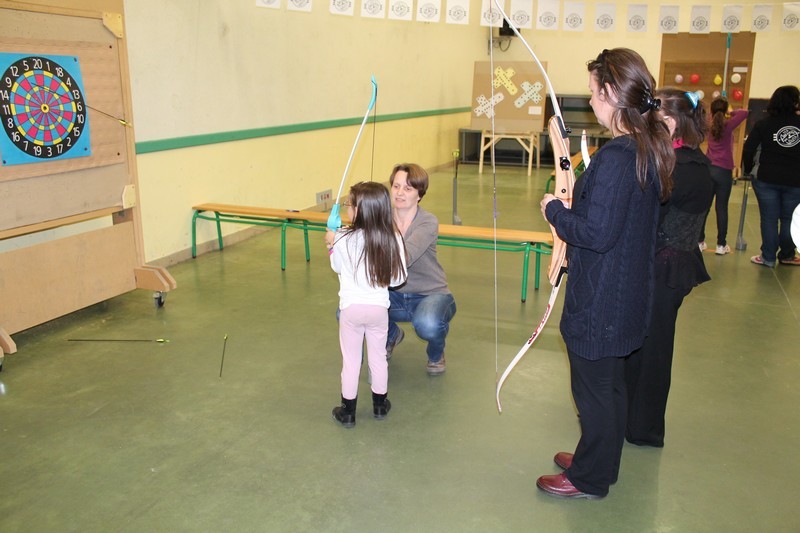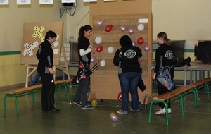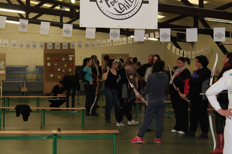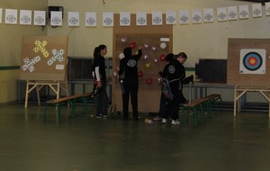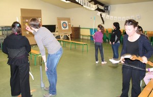 Le lendemain, la quasi totalité des filles du club ont répondu présentes. Elles se sont réparties sur le parcours. C'était en effet un parcours ludique qui était proposé aux participantes. Elles débutaient sur une cible pour l'initiation avec les conseils avisés de nos Amazones.