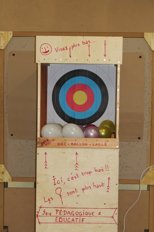 Jeu des ballons: éclater 4 ballons d'une même couleur avec 5 flèches.